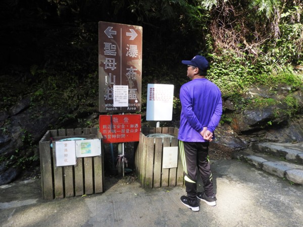 10:28 叉路口左往聖母山莊,右上往第一層(最上層)瀑布,今天不想太累,取左