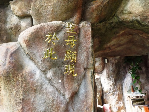 當這五名山友抵達這裡時,忽然看見白衣人影,出現於石洞亭左側第二棵相思樹的樹梢。事後,他們為感念聖母,回到此地立聖母像及建碑。
