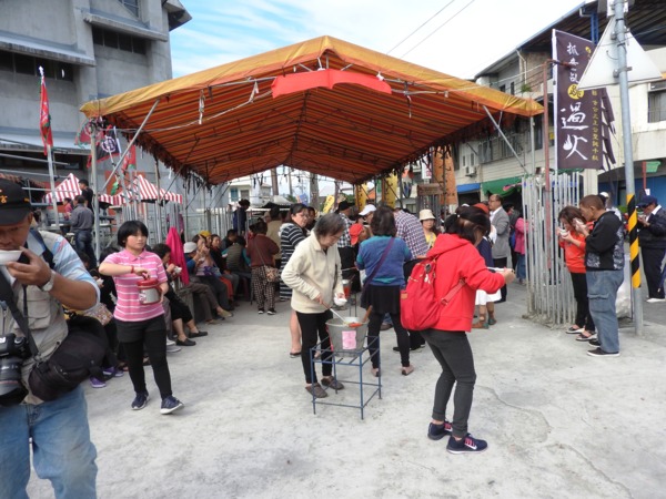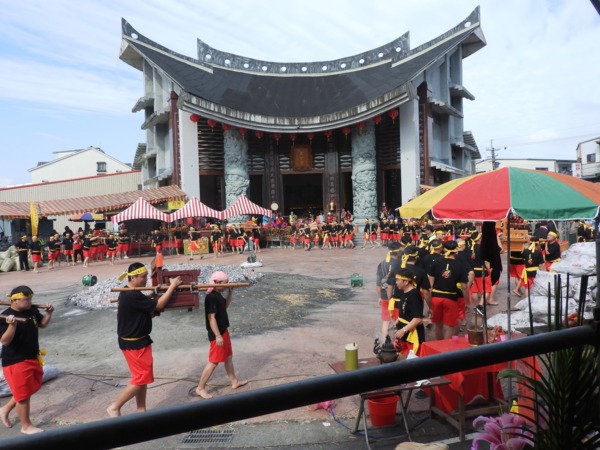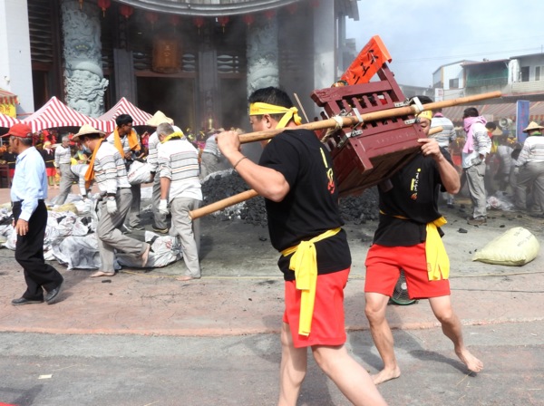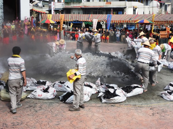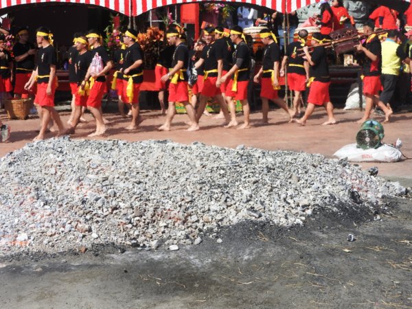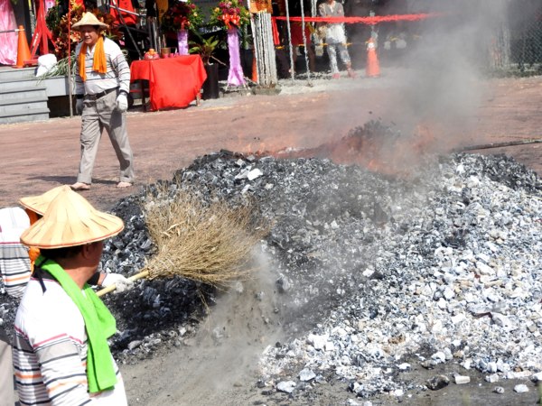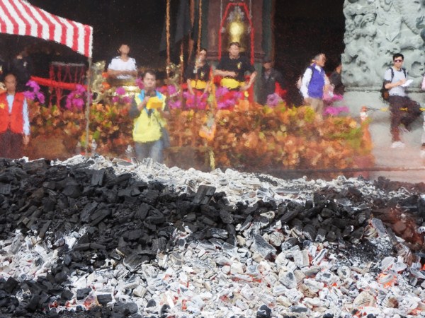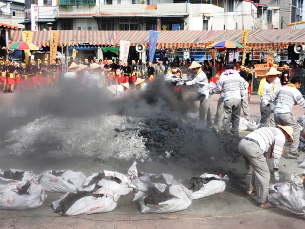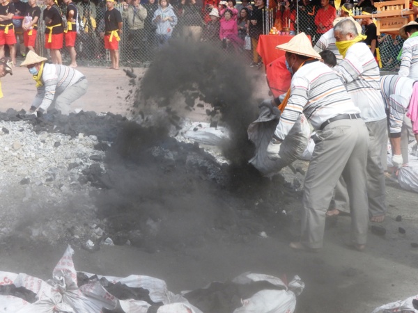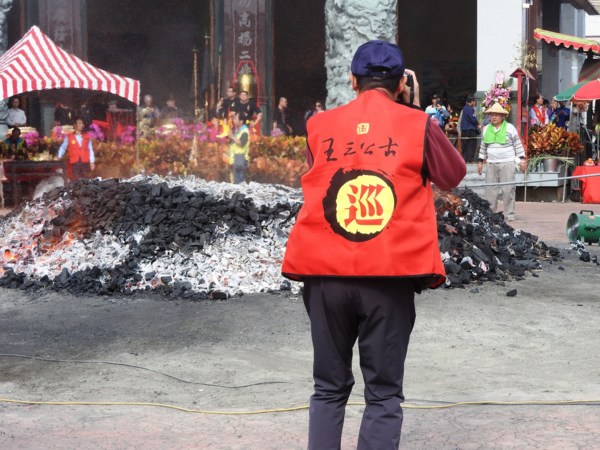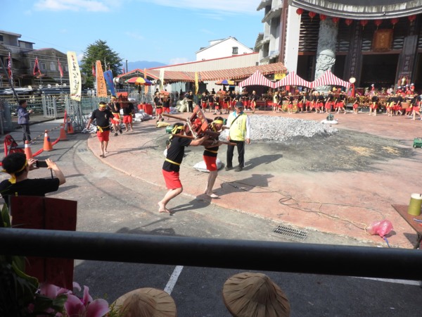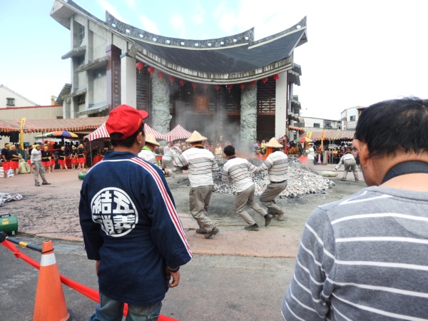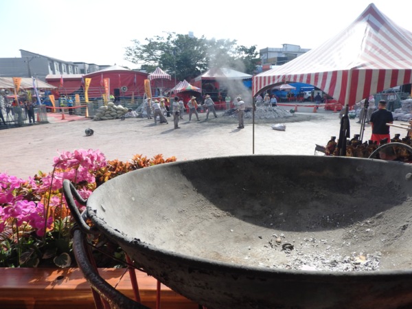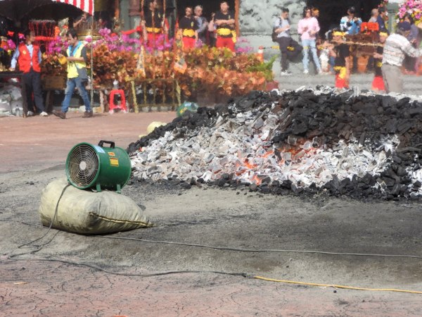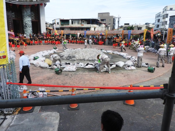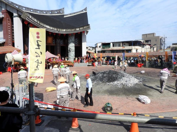 12:26 「二結王公廟」廟埕前看準備「過火」儀式的堆燃炭火