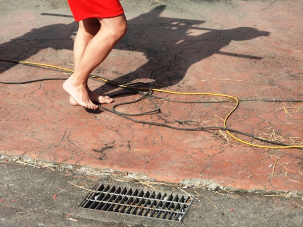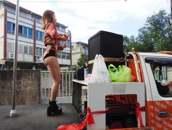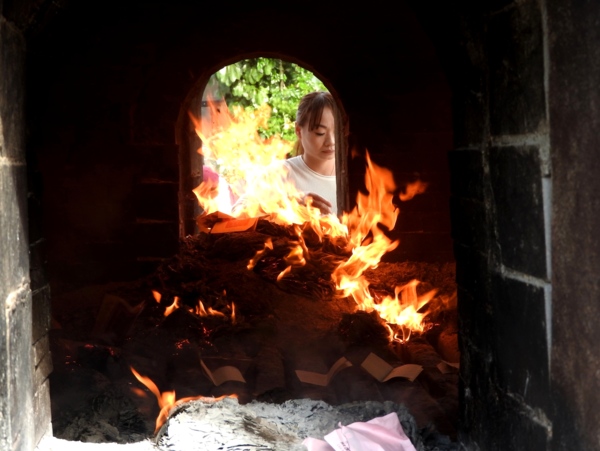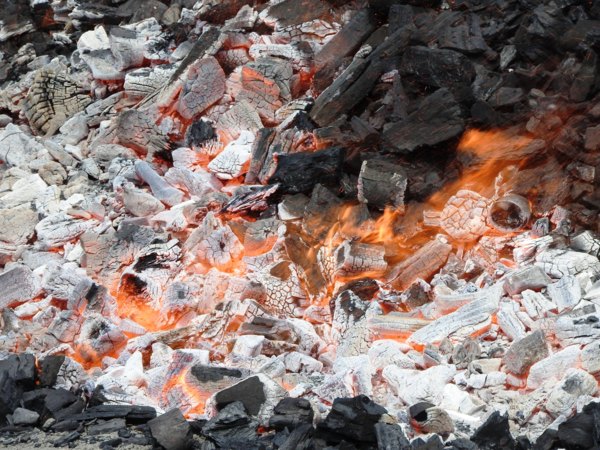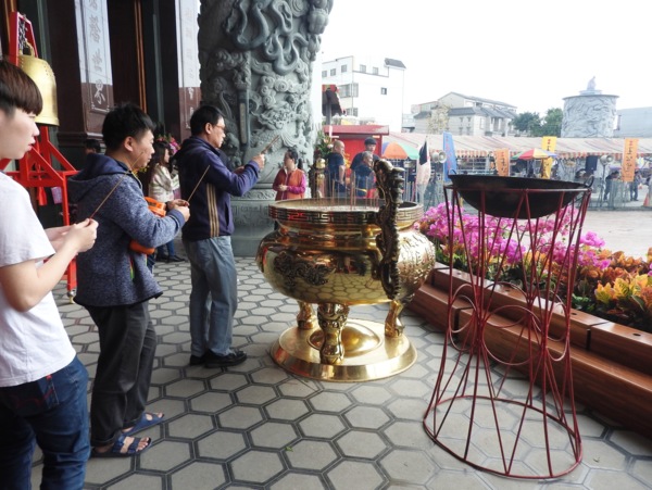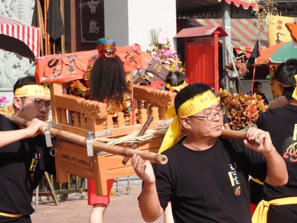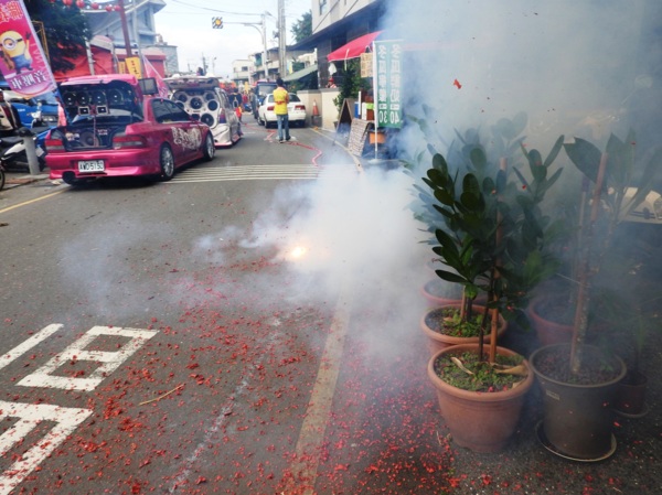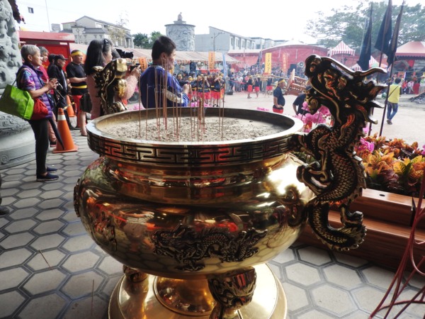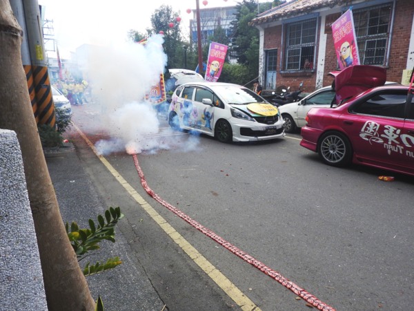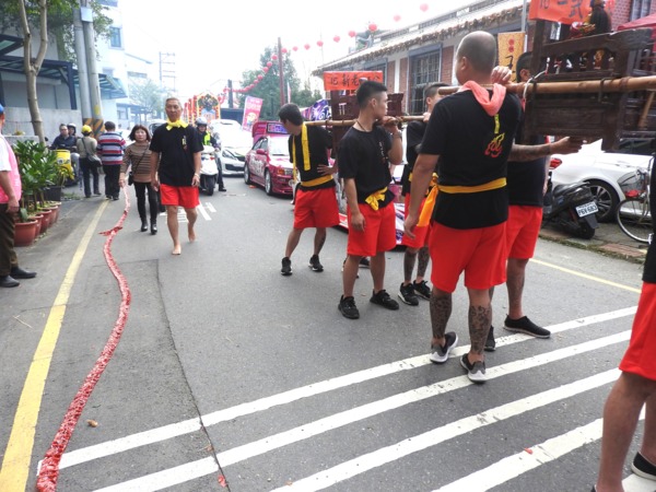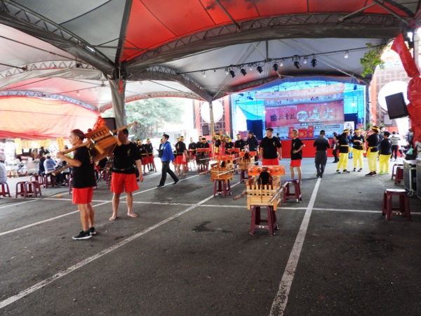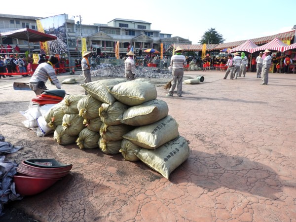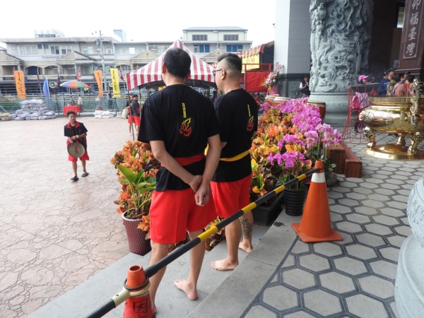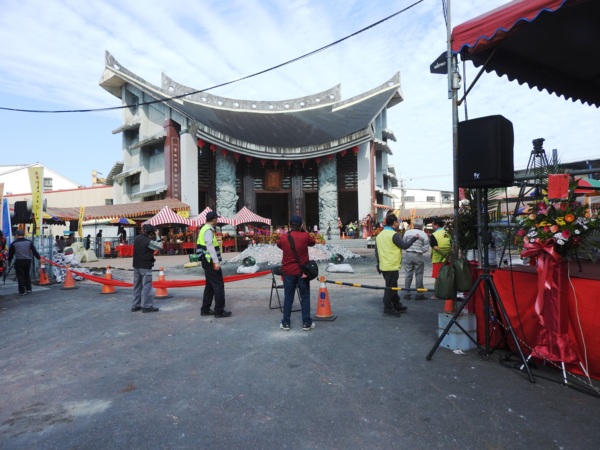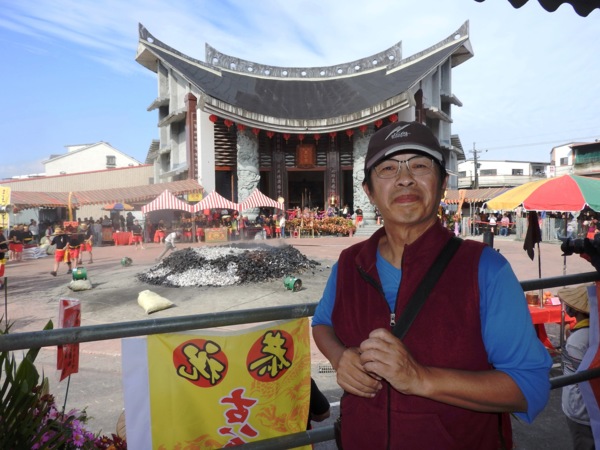 12:26 「二結王公廟」廟埕前看準備「過火」儀式的堆燃炭火