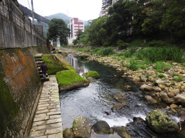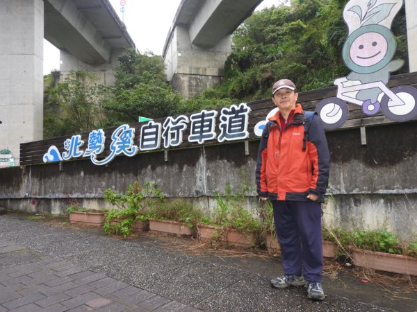 09:23 下到北勢溪攔砂壩(過水橋)旁的「北勢溪自行車道」2.3K終點,由終點往入口方向走