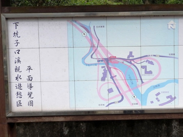 坪林下坑子口溪步道起點在下坑子口,沿著下坑子口溪及北勢溪的溪岸,沿途有優美的溪流風光及茶園景色。步道的入口位於北42線(坪雙公路)里程約1K處,位置就在坪林行控中心旁的坪林交流道的高架橋下,設有公廁、小型停車場,毗鄰下坑子口溪,設有親水遊憩區。茶香地營地是自行車道的終點,也是步道終點。從下坑子口走到茶香地,輕鬆散步,全長約2.3公里,單程約40分鐘。沿途平緩好走,很適合親子老少健行或散步。