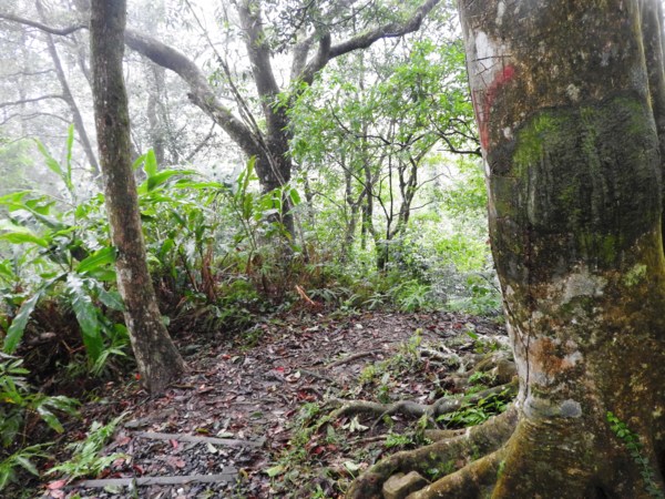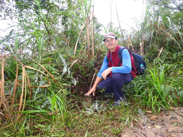 12:04 登頂「鬼子瀨尖」(約在大尾山步道1.4/3.2K處),山頂有顆土地調查局圖根點( H636)