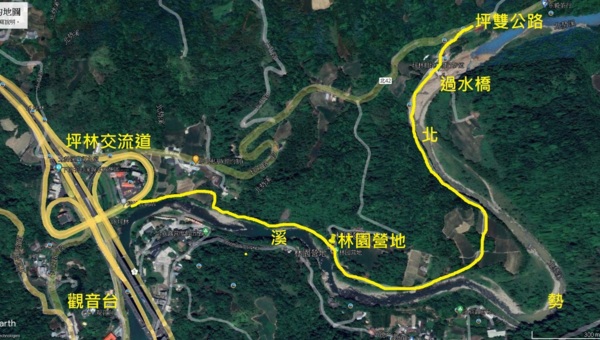 10:02 抵坪林交流道高架橋下「北勢溪自行車道」起點