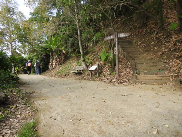 11:32 東平路2巷425號登山口岔路指標,左往咬人狗坑主步道,右往第一步道、第一涼亭,取右行水泥陡坡