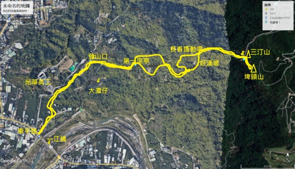 領隊阿伯畫的「咬人狗坑登山步道」路線圖