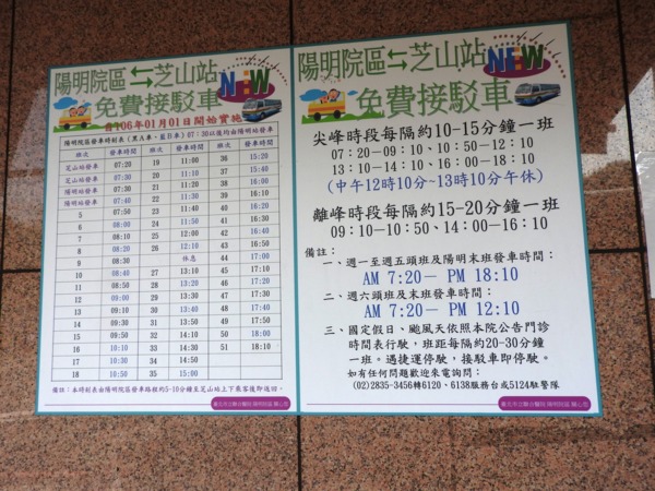 11:15 捷運芝山站1號出口搭上陽明醫院接駁車