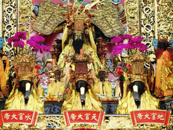 玉皇上帝,又稱「昊天玄穹上帝」,有稱「昊天金闕無上至尊自然妙有彌羅至真高天上聖大慈仁者玉皇赦罪錫福大天尊玄穹高上帝」,乃三清所化身的太極界第一位尊神。關於玉皇上帝之起源事蹟,以宋代「高上玉皇本行集」記載最詳,玉皇上帝乃昊天界上光嚴凈樂國王與寶月光皇后所生之子。出生時全身光瑞,容貌極好,令觀者欣喜,自幼敏慧、慈悲,將國中一切財寶都施捨予困苦鰥寡無依眾生。捨國為民,後又行藥治病拯救眾生,令其安樂,如是修行三千二百劫,始證玉帝。
