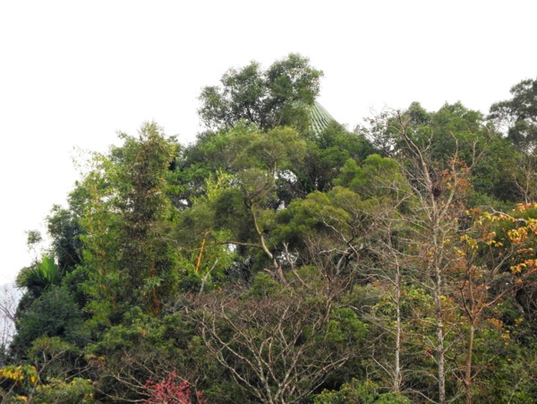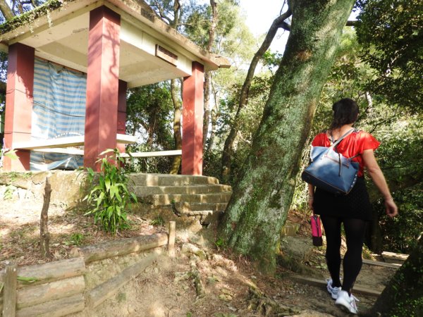 樹叢遮掩中的小獅山三峰「長壽亭」