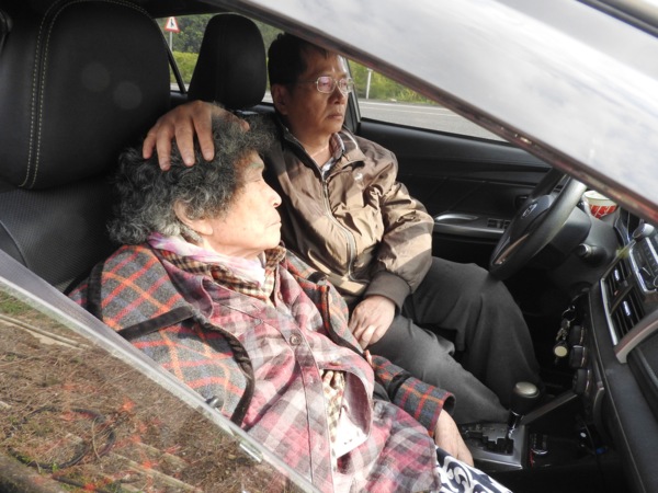 14:51 台2丙線(基福公路)16公里處「彎穹」站牌旁停車,四哥為老媽灌氣