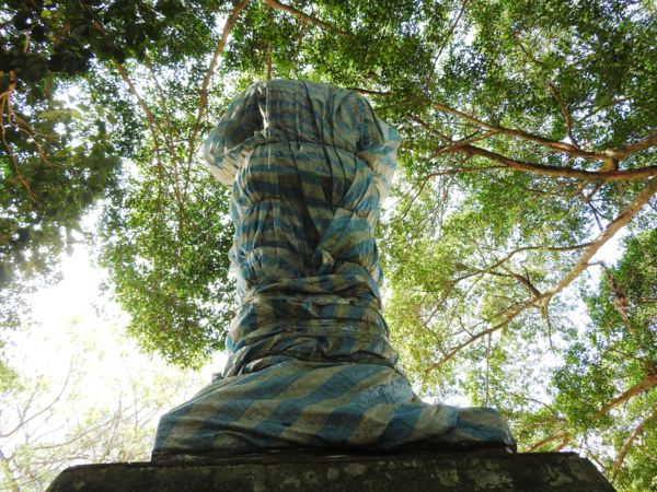 14:30 福德宮廣場的「蔣介石銅像」已被帆布包裹起來