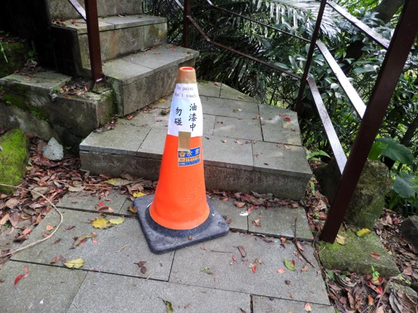 15:05 虎山峰觀景平台前陡梯鐵欄杆剛上油漆,碰不得