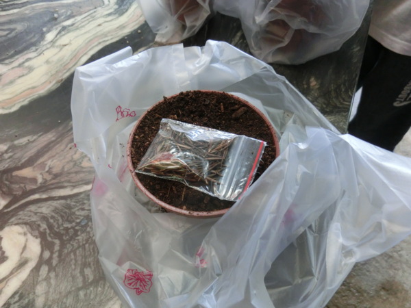 14:07 離開茶花莊前每人送波斯菊種子及培養土一盆