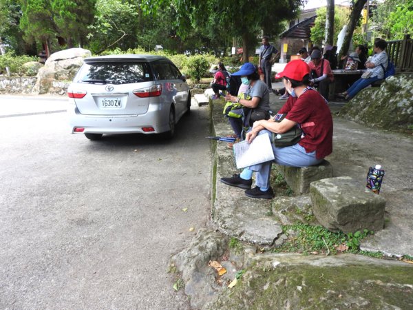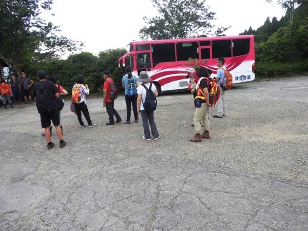 12:15 中巴接駁車只有兩部,先載要從「第二登山口」爬「鵝公髻山」的40幾位山友,其他要去「山上人家農場」的14位山友在觀音寺前等候