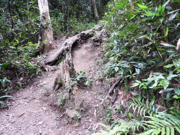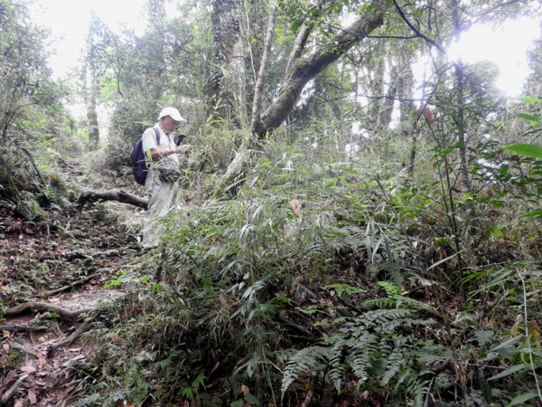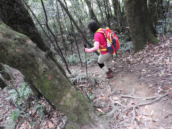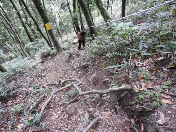 14:42 同團一位由「第二登山口」上山的山友迎面而來(真是健腳,他從12:46 開始起登,不到兩小時已經登頂鵝公髻山東北峰及主峰,要下山上人家了)
