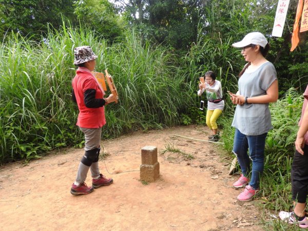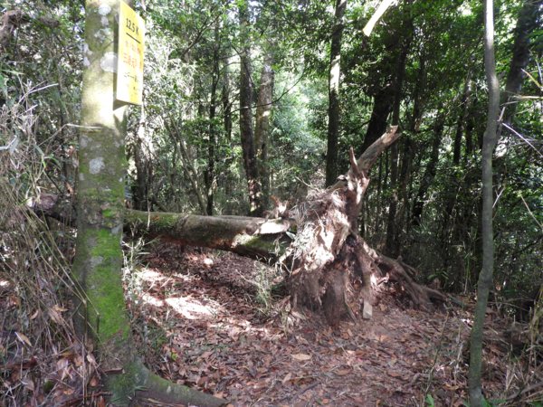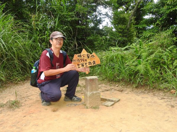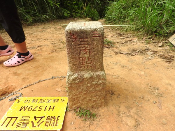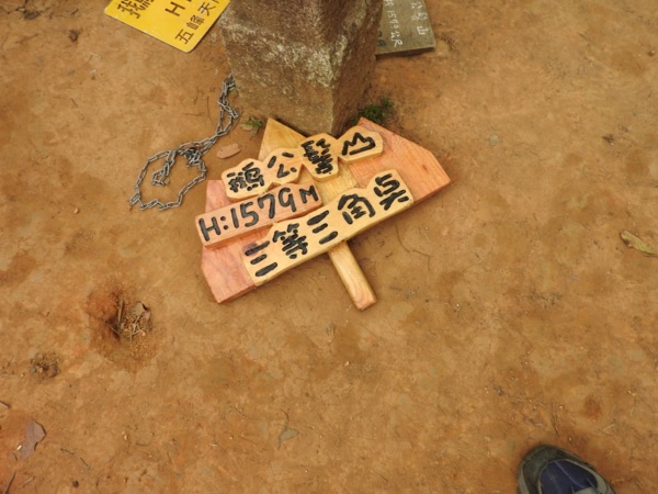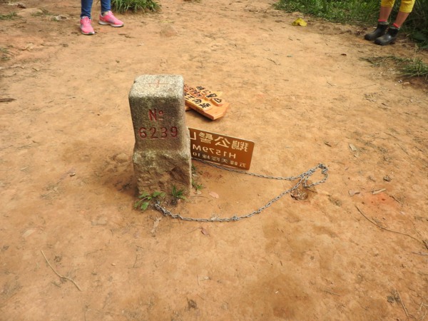 15:23 登頂鵝公髻山(編號06防迷標誌牌) ,海拔1579公尺,有No.6239三等三角點,是台灣小百岳之一