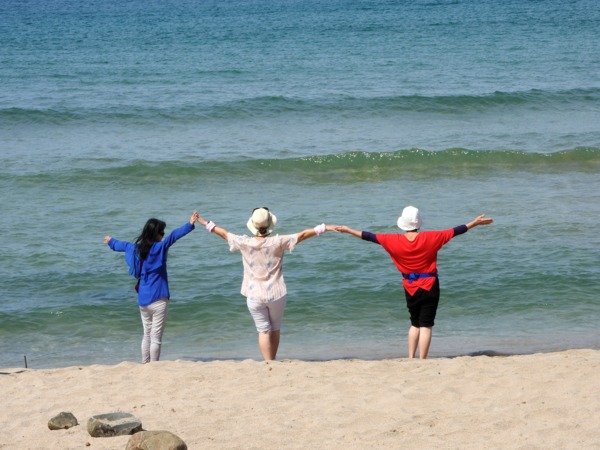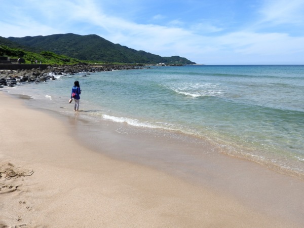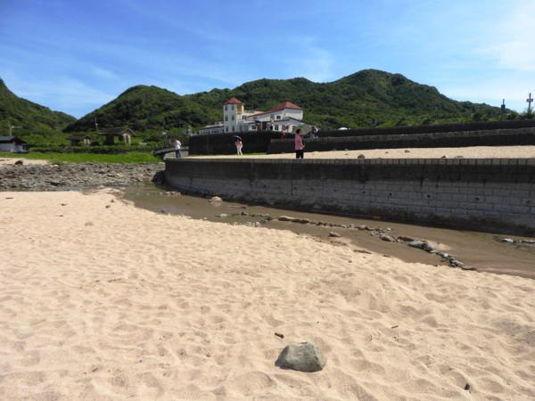 金沙灣海濱公園在北部濱海公路旁,介於龍洞與澳底之間,若不稍加注意即可能錯過這個免費又美麗的玩沙秘境。湛藍的汪洋大海、細緻的白沙質地,加上一些簡易遊憩設施,如賞景平台、小橋及停車場等等,每到夏季假日,總有不少大手牽著小手來這踏浪玩沙,且海水與溪水於此處相遇交會,因此可同時親近大海及小溪,相當特別。