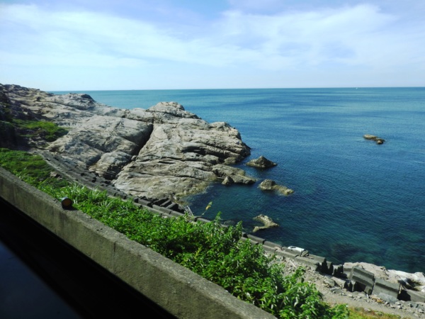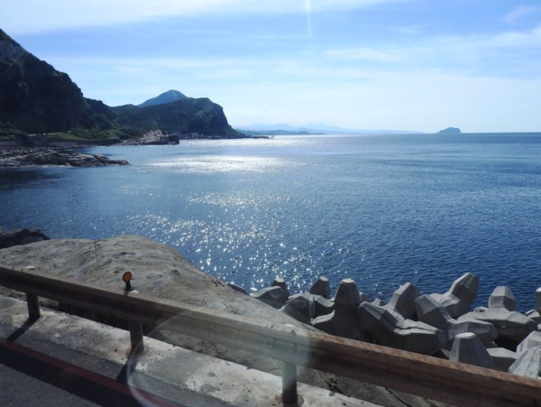 龍洞灣岬突出的岩塊是屬於台灣最堅硬的岩石-四稜砂岩