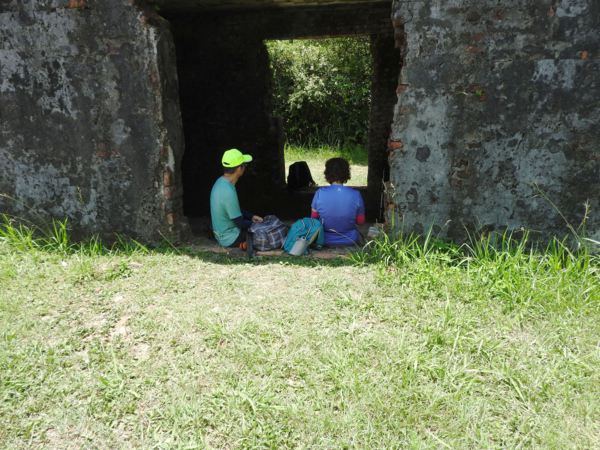 11:41 拉繩上槓子寮砲台稜線上的發電機室,登山隊在此休息午餐