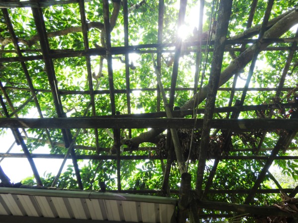 12:39 參觀以竹架環繞樹體,以便採收的百年玉蘭花樹