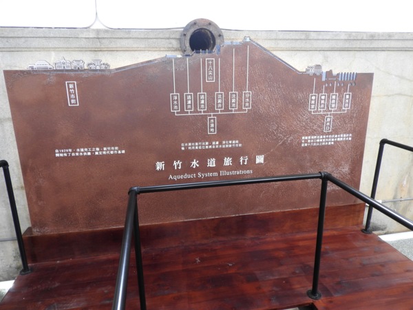 新竹水道取水口展示館為新竹市定古蹟,至今約有九十年歷史,外觀為西洋建築風格,從取水、淨水到給水的各項主要設施均被保存下來,是一座完整性極高的文化資產。戶外規劃有磨石溜滑梯及攀岩設施,側邊小溝池為免費泡腳池,是一個小型的親水區,現已成為親子遊樂的新據點。