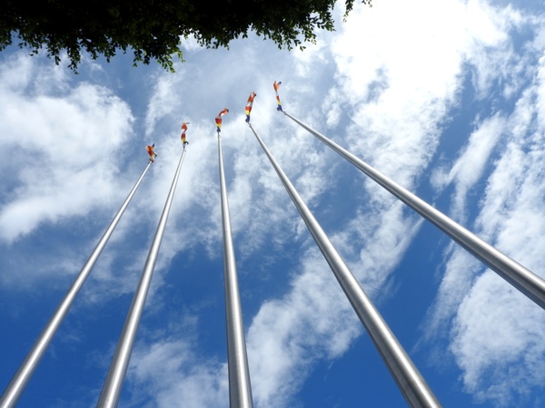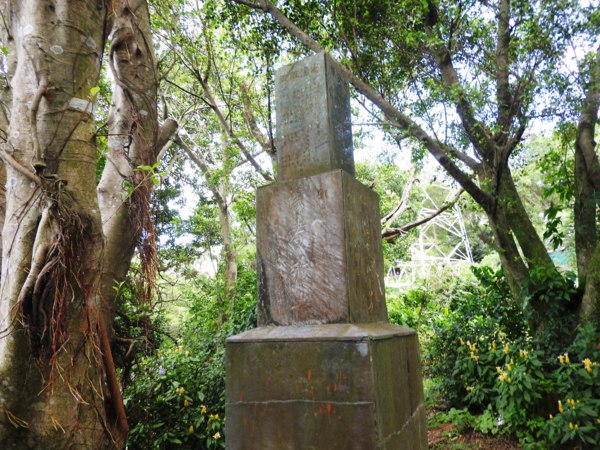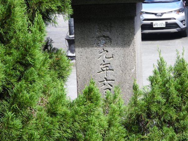 國旗亭前有一顆土地調查局圖根點基石