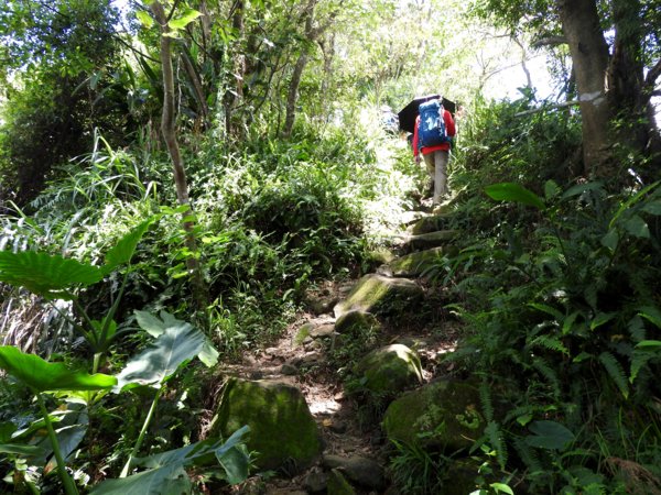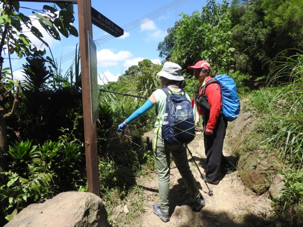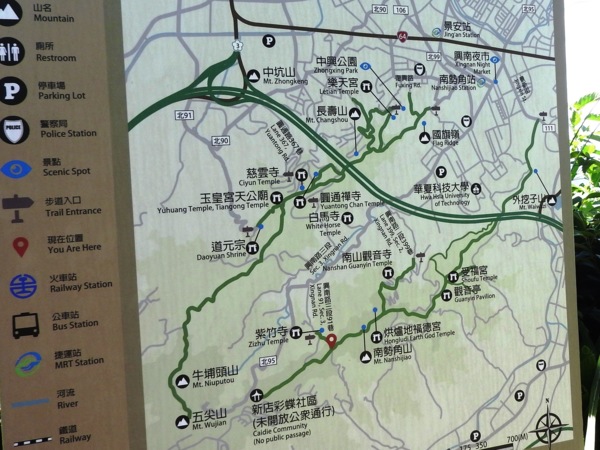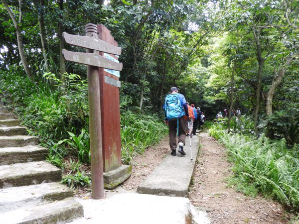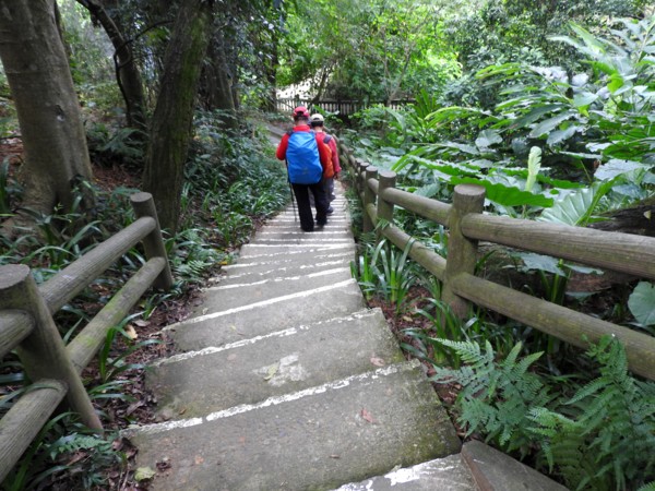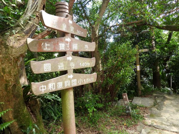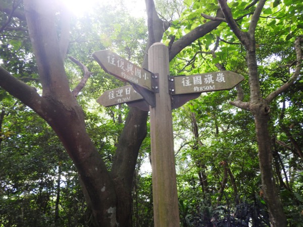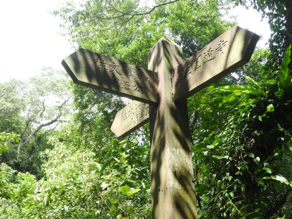 13:39 烘爐地登山步道3.7/4.5K里程樁岔路口,左往南山福德宮,右往華夏工專,取右行