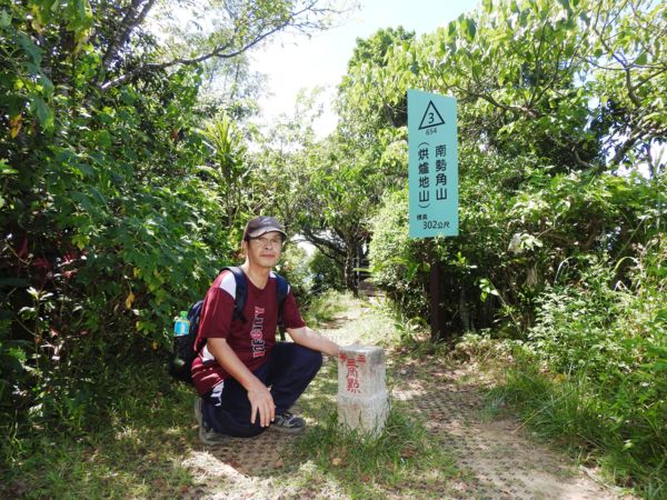 13:20 爬完陡梯抵「忘憂亭」,海拔302公尺,編號654號的南勢角山三等三角點就在20公尺外