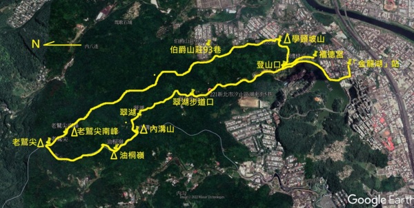 金龍湖→學頭坡山→老鷲尖南峰→老鷲尖→內溝山→翠湖→金龍湖