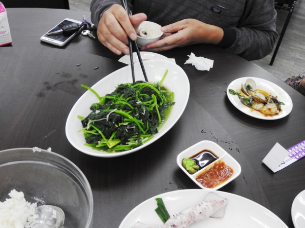 炒蛤蠣200元、地瓜葉120元、蒜泥鮮蚵220元、川燙小卷200元