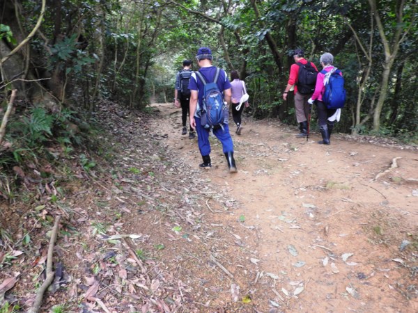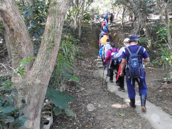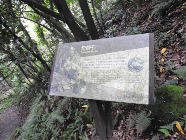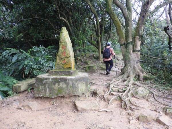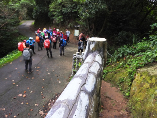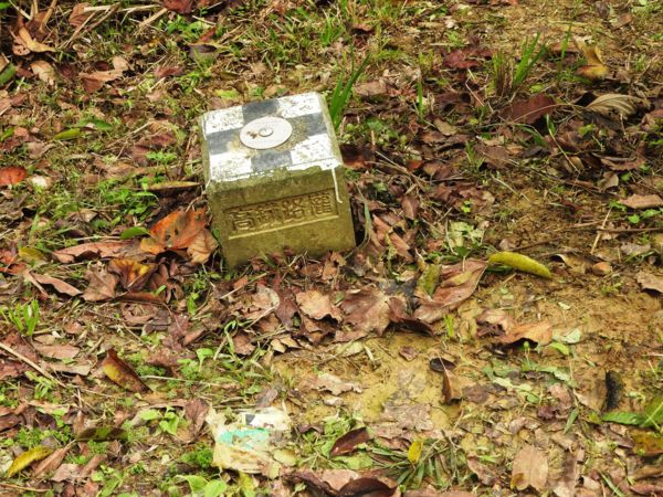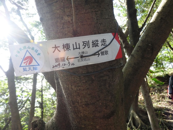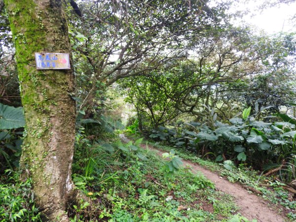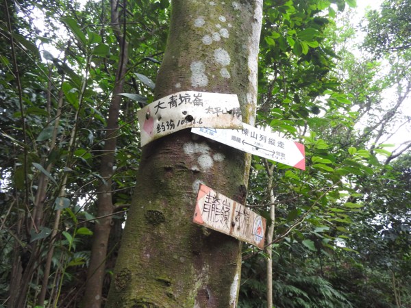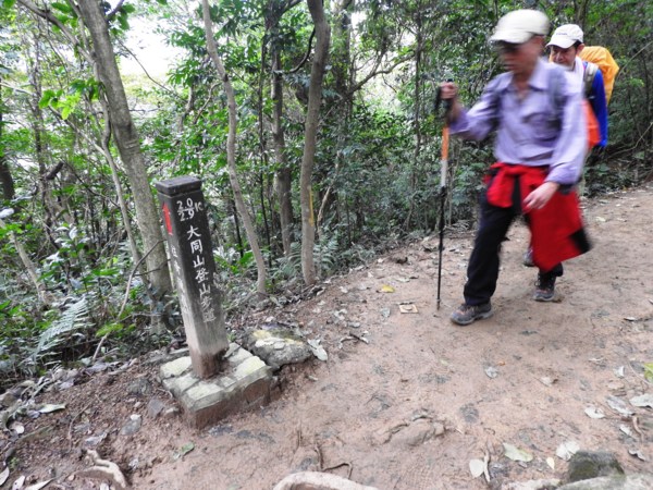 10:53 經過「大青坑崙」入口,樹幹鐵牌標示約3分鐘就可登頂,沒見山友上去,遂過而未上,網路資料此山海拔332公尺,有礦務課第77號基石