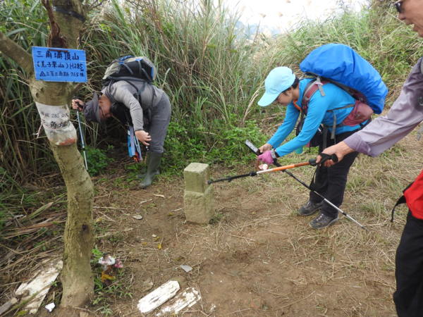 13:47 第七座山頭「石灰坑山」,海拔374公尺,編號九七八號三等三角點
