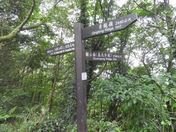 11:23 岔路里程指示牌(離大棟山405三角點460公尺、青龍嶺2240公尺、關公嶺1100公尺)