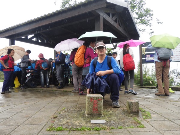 09:17 再一段階梯後抵觀日亭,今天的第一座山頭,「三福山」,海拔233公尺,高鐵北迴No.04基石在涼亭附近