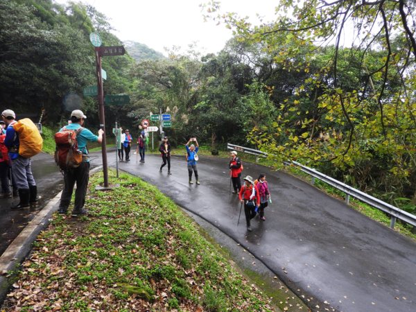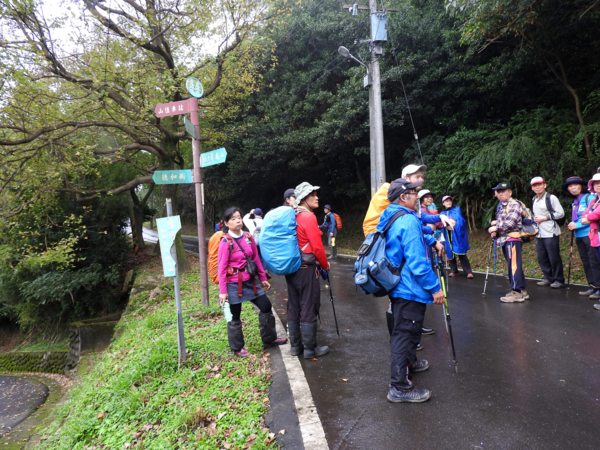 13:13 十字路口集結,9位山友選擇撤退,左下往山佳車站,其他山友續直行往石灰坑老榕樹方向