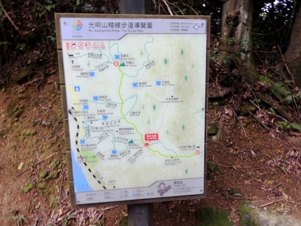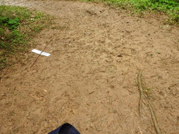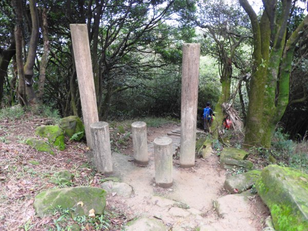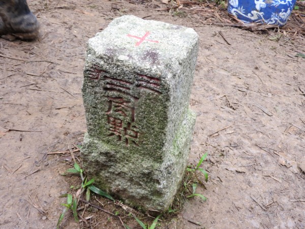 14:04 岔路口,地上留有領隊放的方向指標,後來才知此地是今天的第八座山頭,「望湖山」,海拔350公尺,無基石