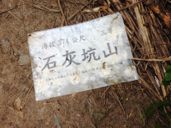 「石灰坑山」,海拔374公尺,編號九七八號三等三角點