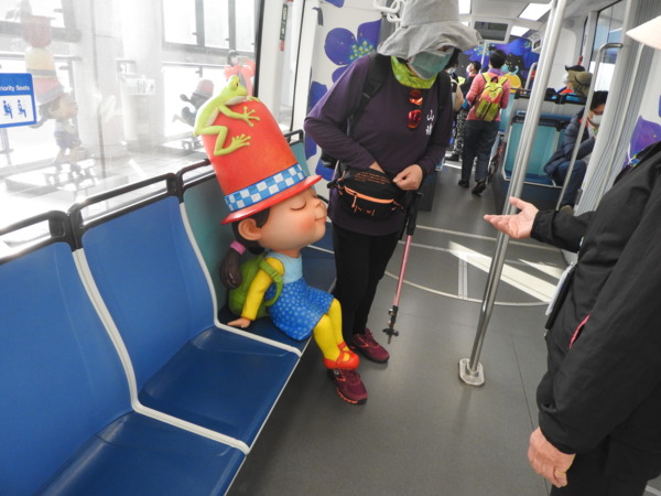 淡海輕軌幾米主題列車,除全車身彩繪,車內也設計「閉上眼睛一下下」繪本娃娃陪你搭車。