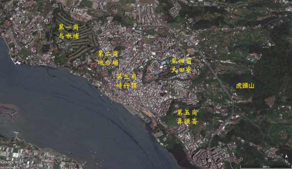 自兩百萬年前起,大屯火山陸續噴發,熔岩向四周流去,形成一條條低處的餘波,在淡水境內分成五條如手指般的丘陵,俗稱五虎崗。
