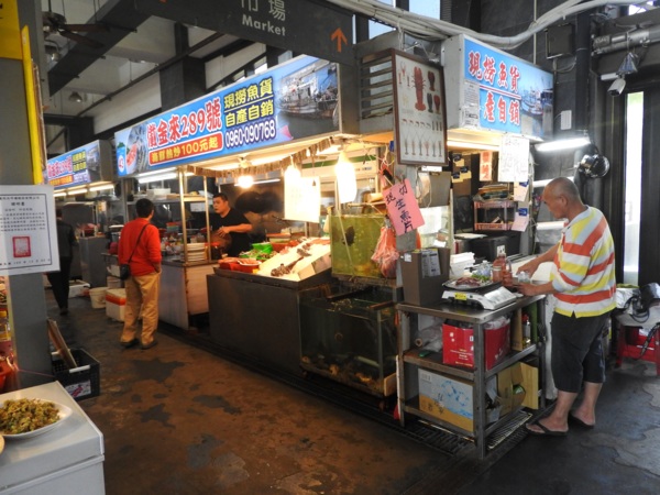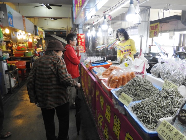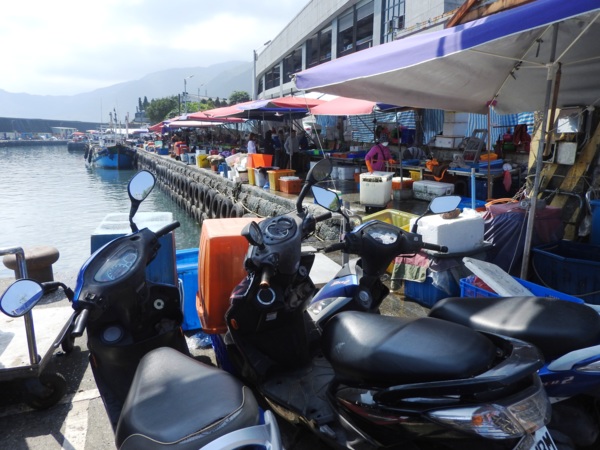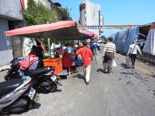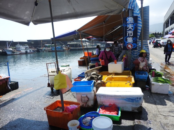 大溪漁港「漁夫市集」緊鄰漁港,空間擁擠濕滑,就不逛了
