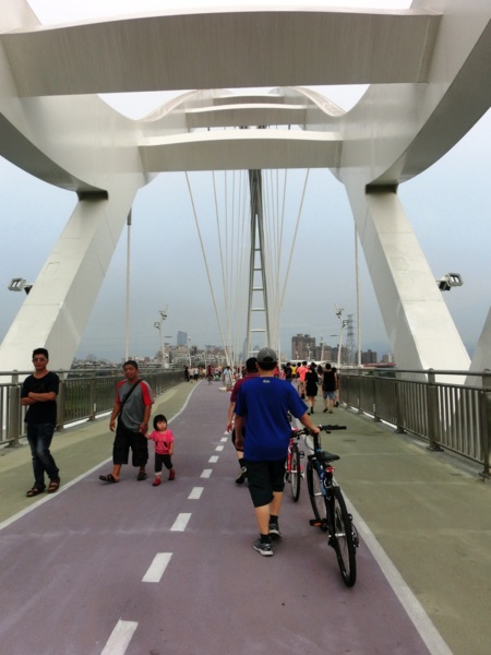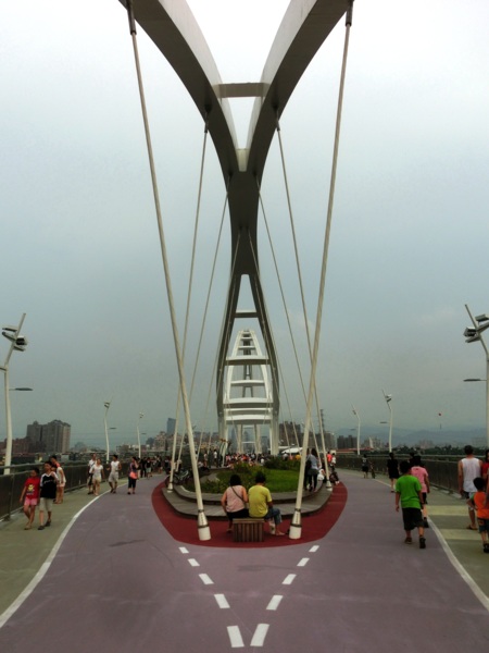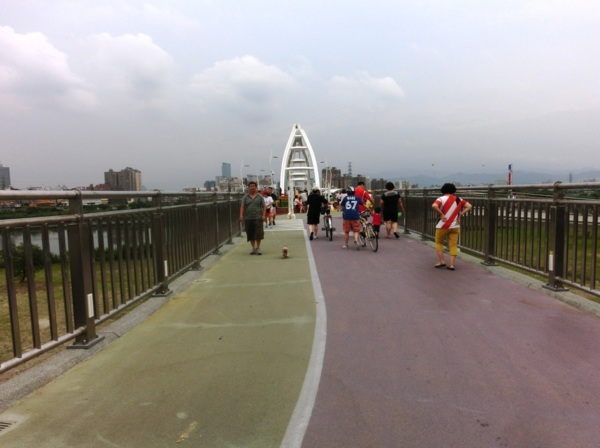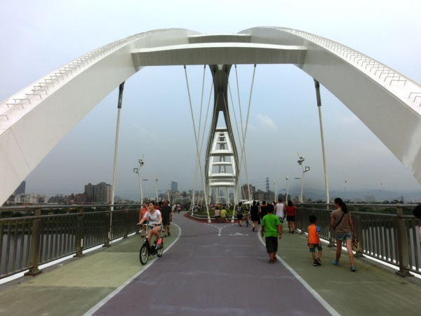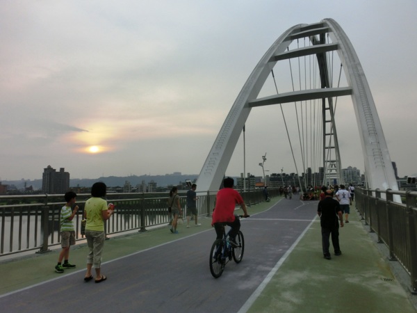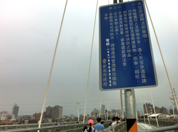 水利局副局長宋德仁表示,橋的兩端銜接板橋區435藝文特區和新莊廟街,也串連大漢溪兩岸的自行車道,方便民眾跨區遊憩、運動。橋上有一段仿美國大峽谷的「天空步道」,長60公尺的透明步道,距下方大漢溪水面約12至15公尺高,昨天很多民眾爭相上橋參觀試走,多笑說:「不怎樣嘛」、「不會怕啦」,也有人不敢嘗試,悄悄繞道而行。