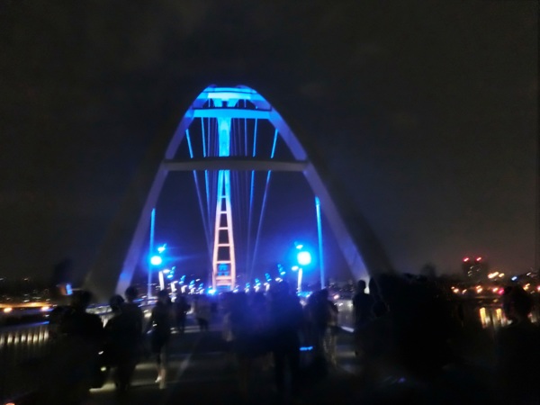由於新月橋是新橋梁,兩側也有LED照明光雕,夜間亮燈展演時間,冬令為(10至5月)晚上6時至10時30分,夏令(6至9月)晚上6時30分到10時。 水利局未來也考慮開放街頭藝人進駐新月橋上表演,搭配光雕映照大漢溪「秒殺」底片盛況,希望新月橋能成為新北的「布魯克林大橋」,與藍色公路開通、水岸碼頭闢建,共同讓新北朝向「大河城市」跨出一大步。