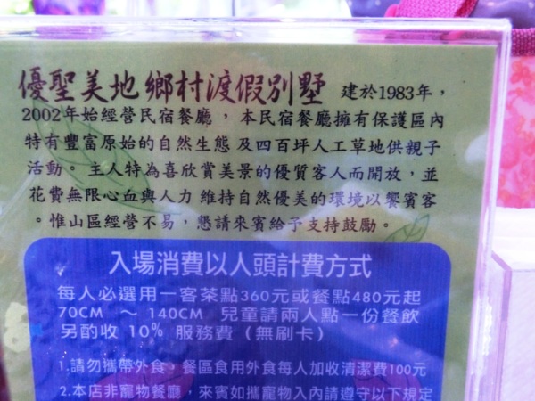 「優聖美地」是一棟歐式三層樓的別墅,原創者陳老先生於二十餘年前,行經濛濛谷途中,被這片隱身於綠蔭蓊鬱的山林及遠處遼闊山脊層巒的燕子湖秀麗風景所吸引,因而購地自建,設計意念源自本身對歐式建築風格的喜愛並配合相鄰翠綠山水,一草一木一磚一瓦親身打造。原做為家人渡假之用,但如此美景,只有屋主可以獨享,實在可惜!故對外開放並邀您共享這片美麗山林所締造的唯美情境與歐式庭園風情。