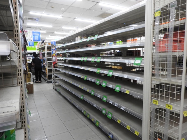 台灣新冠肺炎疫情升溫,超市貨架商品被搬空