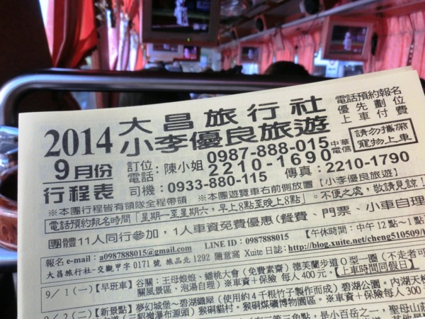 費用 : 1,050元(含保險+大車車資+中午便當+小車車資350元+太平山森林遊樂區團體門票150元+餐廳晚餐100元)