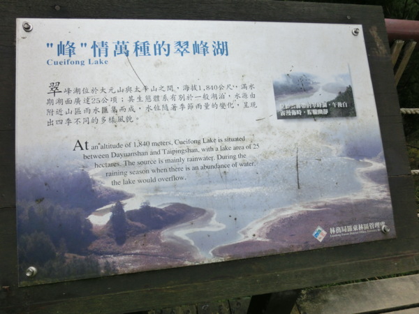 翠峰湖自然景觀:海拔約1,840 m,是台灣最大的高山湖泊,有如薄霧少女之稱 。