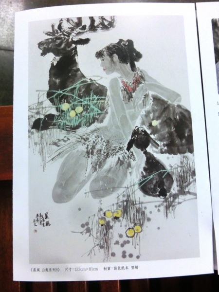 季則夫著名的「山鬼系列」,靈感來自於《九歌》的第九首〈山鬼〉,以沒骨手法,捕捉了山鬼溫柔癡情的性格,構成夢幻唯美的神話世界。而山鬼系列不侷限於《九歌》題材,也包含其他歷史與傳說人物,例如《當窗理雲鬢》,以北朝民歌《木蘭詩》為題材,將花木蘭的陽剛與溫柔二面,詮釋得淋漓盡致。