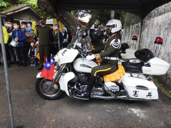 桃園市龜山憲光二村12日舉辦「愛憲年代」憲兵節紀念活動,特別邀請憲兵「快速反應連」軍用重型機車到現場繞行展示,讓民眾度過一個滿滿眷村文化及帥氣憲兵的假期。