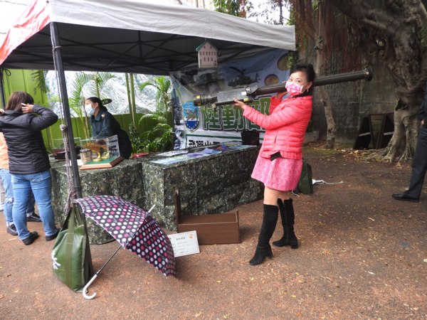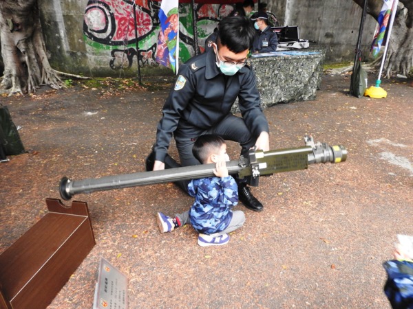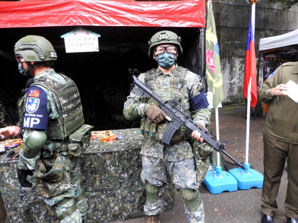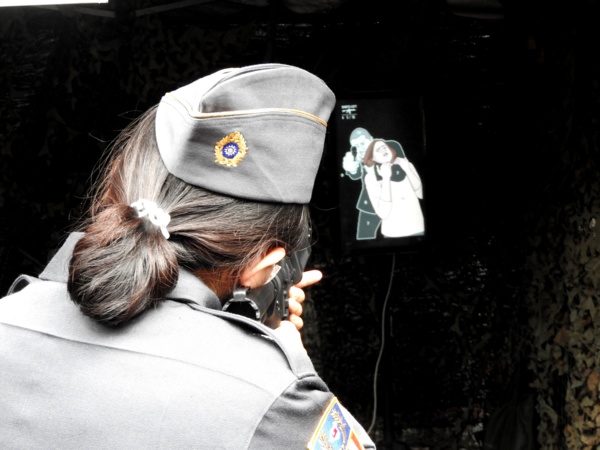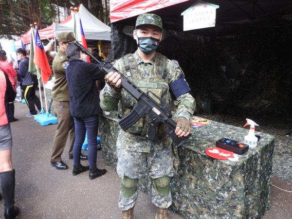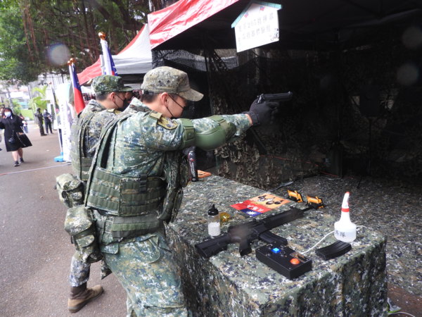 憲兵205指揮部「雷指器體驗組」攤位,讓民眾體驗加裝雷射指示器的T91步槍及T75手槍的射擊感受