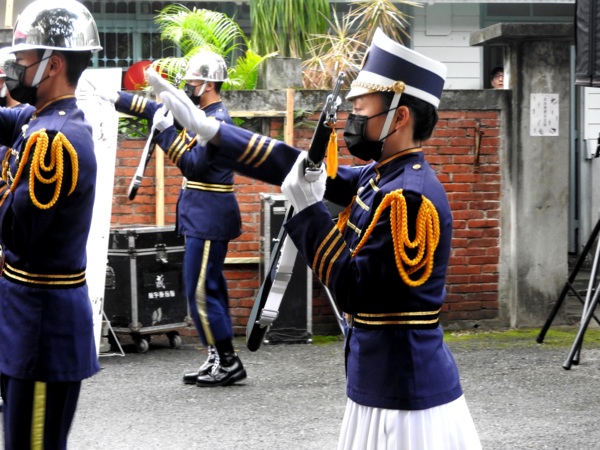 14:43 「新興高中儀隊」進場操槍表演